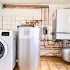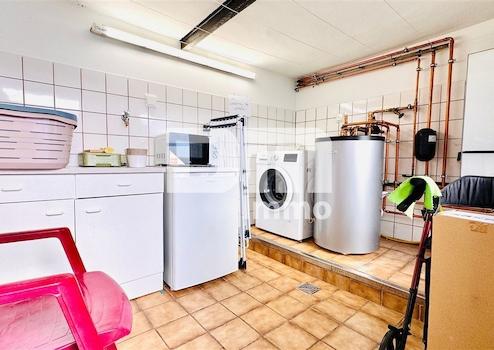 Im Nebengebäude 1, das den Durchgang/die Verbindung zum großen Nebengebäude 2/Scheune darstellt, ist eine geflieste Waschküche/Heizungsraum (ergänzt durch einen Dachboden) verortet.