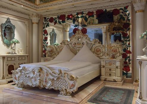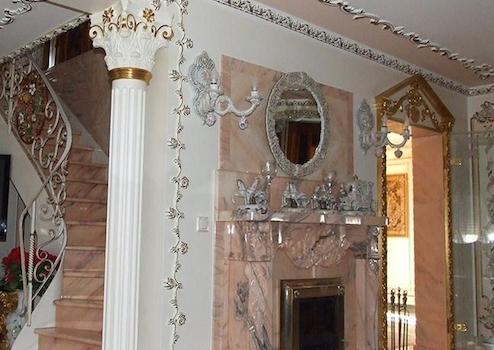 Durch den exklusiven Edelweiß/rosa Marmor Boden in Schmetterling Bilder ausgelegt, und den wunderschönen Stuck (Barock und Rokoko Stil) an den Wänden und Decken, fühlt man ein Hauch von Luxus.