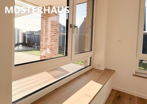 Auf einer Wohnfläche von ca. 148 m² ermöglicht das Haus komfortables ebenerdiges Wohnen mit einer klar strukturierten und zugleich großzügigen Raumaufteilung. Mittelpunkt des Hauses ist der offen gestaltete Wohn-, Ess- und Kochbereich mit ca. 59 m², der durch große Fensterflächen ein helles, freundliches Wohnambiente schafft. Kunststofffenster mit 3-fach-Verglasung sowie elektrische Rollläden unterstreichen den hochwertigen Ausstattungsstandard.