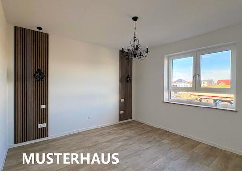 Sämtliche Decken und Wände werden mit hochwertiger Raufaser tapeziert und weiß gestrichen. Auf Wunsch ist eine helle, dezente Farbabtönung möglich, sodass das Haus bei Übergabe bezugsfertig und neutral gestaltet ist.