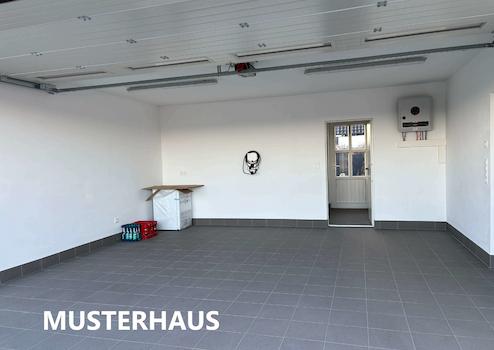 • Garage & Außenanlagen: Doppelgarage mit 5-m-Sektionaltor, Pflasterungen, Grünflächen, Beetanlagen, Verrohrungen für Schmutz- und Regenwasser.