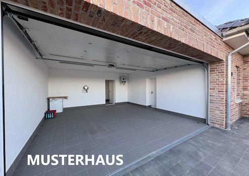 Zum Objekt gehört eine Doppelgarage mit elektrischem 5-Meter-Sektionaltor sowie separatem Technik- und Abstellraum. Pflasterungen, Grünflächen, Beetanlagen sowie die vollständige Verrohrung für Schmutz- und Regenwasserleitungen sind im Leistungsumfang enthalten. Das Haus wird zur Übergabe sauber gereinigt übergeben.