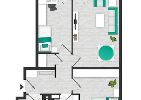 - drei Zimmer (zwei davon mit Zugang zum Balkon)