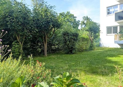 Der Balkon zeigt in den sehr grünen und ruhigen Hinterhof.