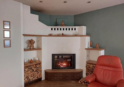 - im EG zusätzlich: ein mit Schamottesteinen gemauerter Kamin mit Holzfeuerung, Wärmespeicher bis zu 48 Std.