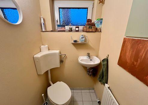 Im Eingangsbereich stehen Ihnen ein Hauswirtschaftsraum mit Anschluss für die Waschmaschine sowie ein separates Gäste-WC zur Verfügung. Über den Flur gelangen Sie zu einem Raum, der sich ideal als Büro oder Arbeitszimmer eignet.