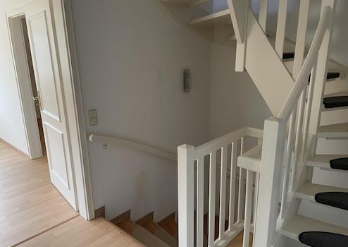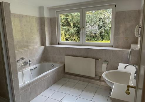 In den Obergeschossen finden sich 3 große Zimmer sowie ein modernes Badezimmer mit Badewanne und getrennter Dusche. Eines der Zimmer verfügt noch über einen direkt angrenzenden Abstellraum, welcher problemlos als begehbarer Kleiderschrank genutzt werden könnte. Eines der Zimmer befindet sich im komplett ausgebauten Dachgeschoss und bietet damit einen zusätzlichen Raum, der als Rückzugsort für Jugendliche oder Arbeitszimmer geradezu prädestiniert ist.