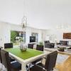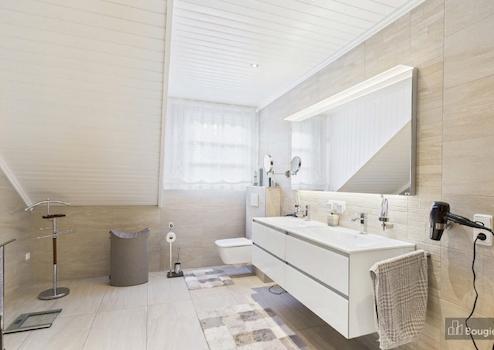 Ein besonderes Highlight der Immobilie ist die große Doppelgarage mit zwei elektrisch betriebenen Sektionaltoren, die zusätzlich als Werkstatt, Hobbyraum oder Partylocation für gesellige Abende genutzt werden kann. Zudem stehen im Untergeschoss der Heizungsraum sowie ein großer Hauswirtschaftsraum zur Verfügung.