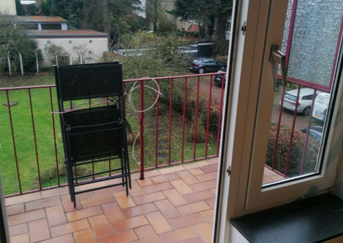 Der Balkon liegt zur Gartenseite und bietet einen erholsamen Rückzugsort. Den Mietern des Hauses steht ebenfalls ein Gemeinschaftsgarten zur Verfügung.