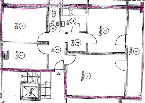 - - ca. 87 qm Wohnfläche verteilt auf 3 Zimmer, Küche, Bad, WC