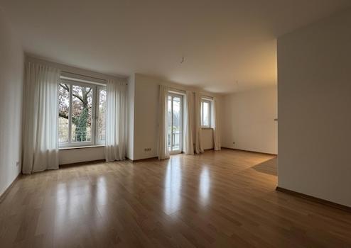 Das großzügige Wohnzimmer überzeugt durch weitläufige Fensterflächen, die eine außergewöhnlich helle und angenehme Wohnatmosphäre schaffen. Zugleich öffnet sich der Raum nahtlos zum sonnigen Balkon, der den Wohnbereich erweitert und einen wertvollen Außenraum zum Entspannen und Genießen bietet.
