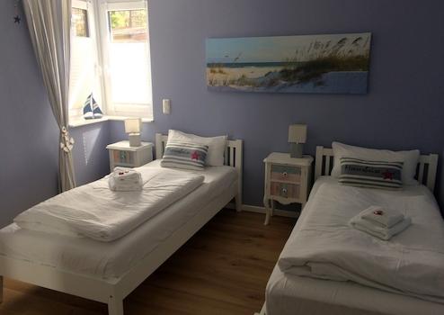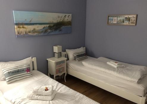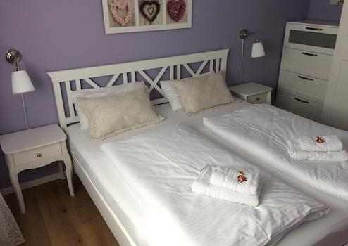Die Wohnung verfügt über zwei Schlafzimmer. Das Schlafzimmer Zimmer 2 ist mit einem Doppelbett 180x200 mit verstellbaren Lattenrost ausgestattet zusätzlich befindet sich ein zweiter Fernseher. Das zweite Schlafzimmer Zimmer 1 ist mit zwei Einzelbetten 90x190 eingerichtet. Das helle Badezimmer mit bodentiefer Dusche rundet das Angebot ab und sorgt für einen angenehmen Start in den Tag.