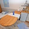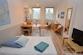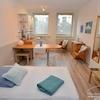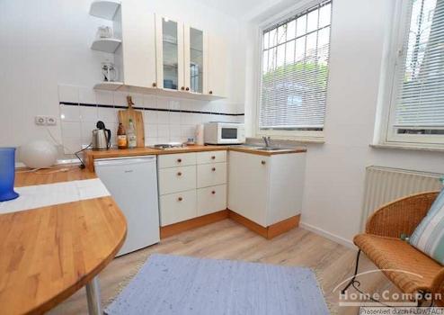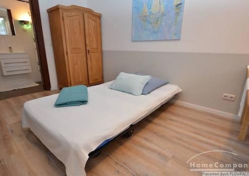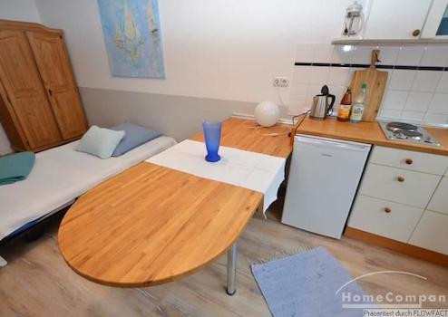Dieses Apartment befindet sich im Souterrain eines Altbremerhaus im vorderen Schwachhausen. Über einen sparaten Eingang gelangt man in das Haus. Das Apartment ist offen gestaltet und kombiniert den Wohn-und Schlafbereich mit der Küche. Optisch durch den Esstisch abgetrennt befindet sich im hinteren Teil die Singleküche mit Kühlschrank, E-Herd und Mikrowelle. Der Wohn-und Schlafbereich umfasst ein Einzelbett mit Kleiderschrank sowie ein kleine Anrichte mit TV-Gerät. Das Badezimmer ist mit einer Dusche ausgestattet.