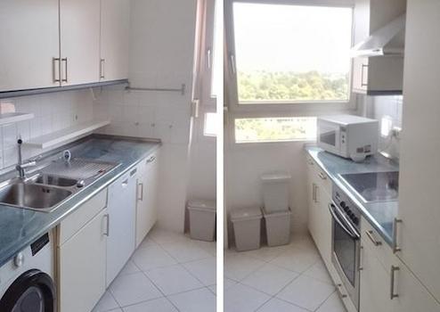 Die Wohnung befindet sich im obersten Stockwerk und liegt höher als die umliegenden Gebäude. Dies bietet einen hervorragenden Panoramablick und erhöht gleichzeitig die Privatsphäre, da keine höheren Gebäude in der Nähe den direkten Blick in die Wohnung ermöglichen.