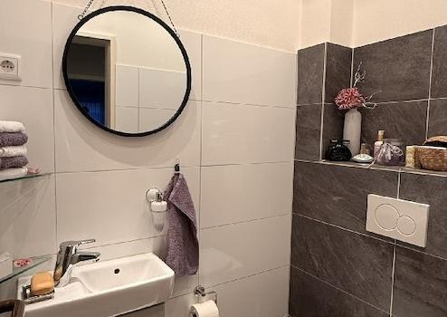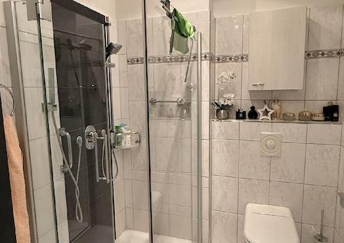Elektrofußbodenheizung, teilweise Fliesenfußbodenoberbelag, Kunststofffenster mit Isolierverglasung, helles schallisoliertes Zimmer (ehem. Musiker) mit Eckfenstern, Einbauschränke, überwiegend Rolllä-den, große, fast ebenerdige Dusche mit Echtglasabtrennung, teilweise Glasfasertapete, Balkon, Aufzug, Garage mit Sektionaltor.
