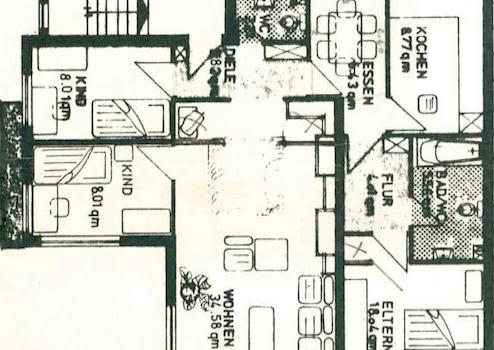 Wohnung 2. OG: ca. 98,00 m² Wohnzimmer mit Balkon, 2 Kinderzimmer, Schlafzimmer, Essecke, Küche, Wohndiele, Badezimmer, sep. Gäste-WC