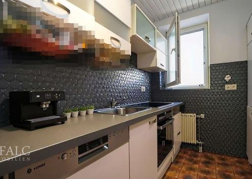 Damit es nicht bei Dosenravioli bleiben muss, wird die Wohnung mit einer großzügigen Küche abgerundet, Kühl- und Gefrierkombination, Spülmaschine, Cerankochfeld und Backofen sind bereits vorhanden. Zahlreiche Schränke sorgen für Ordnung und ausreichend Stauraum. Verwöhnen Sie Ihre Lieben mit deftiger Hausmannskost oder versuchen Sie sich an neuen kulinarischen Köstlichkeiten, serviert wird im Durchgangszimmer neben der Küche.