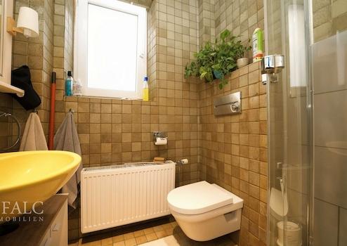 Das Bad nebenan ist ausgestattet mit einer großen Dusche, die zu Erfrischungen einlädt, hier kann der Tag gut starten! Für die Waschmaschine steht eine Waschküche im Untergeschoss zur Verfügung.