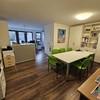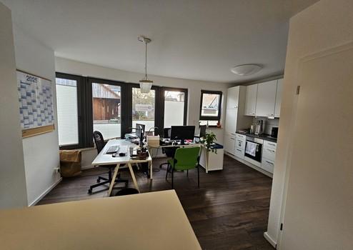 Ein heller und offener Wohn-Ess-Bereich sorgt in Kombination mit dem hochwertigem Parador-Laminat sowie der darunter liegenden Fußbodenheizung für eine einladende Atmosphäre und Wohlfühlcharakter. Darüber hinaus verfügt die Wohnung über elektrische Rollläden.