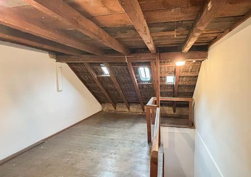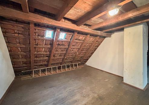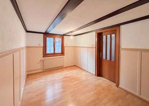 Im Inneren erwartet Sie eine gemütliche Wohnatmosphäre, die durch sichtbare Holzbalkenelemente in einigen Räumen des Erdgeschosses zusätzlich unterstrichen wird. Die Etagen sind über eine schöne, alte Holztreppe miteinander verbunden. Das Wohnzimmer bildet das Herzstück des Hauses – hier sorgt ein Kaminofen an kühleren Tagen für wohlige Wärme und schafft eine behagliche Stimmung. Ergänzt wird die Wärmeversorgung durch eine moderne Gastherme, die erst 2020 erneuert wurde. Das Badezimmer präsentiert sich in einer angenehmen Größe und ist in einem zeitlos-neutralen Stil gehalten, sodass es problemlos an individuelle Gestaltungsvorlieben angepasst werden kann. Ein weiterer Pluspunkt: Im Dachgeschoss besteht die Möglichkeit, zusätzlichen Wohnraum zu schaffen – ideal für ein weiteres Schlafzimmer. Zu beachten ist, dass die Deckenhöhe in einigen Wohnräumen teilweise nur etwa 2 Meter beträgt, was jedoch dem wohnlichen Charakter keinen Abbruch tut.