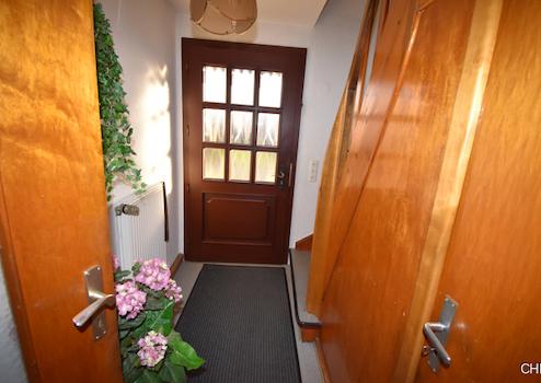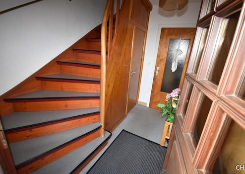 Aber gehen wir zuerst ins Haus. Über ein paar Stufen gelangt man in das Treppenhaus von dem aus man zentral in das ausgebaute Ober- / Dachgeschoss, sowie auch in den Keller gelangt