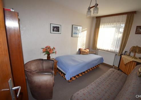 Gehen wir nun in das Erdgeschoss. Hier befinden sich eine Diele, ein kleines Kinderzimmer, sowie ein Schlafzimmer und ein Badezimmer, ausgestattet mit Wanne, WC und einem Tageslichtfenster. Weiterhin gibt es ein geräumiges Wohnzimmer und neben dem Wohnzimmer kommt man in die Küche mit Einbauküche und einer Essecke für das morgendliche Frühstück.