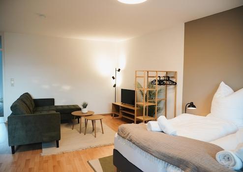 Die gemütliche 2-Zimmer-Wohnung im 2. OG mit Balkon ist der perfekte Ort zum Ankommen, Auftanken und Wohlfühlen. Dich erwarten eine voll ausgestattete Küche, Smart TV, WLAN, ein Badezimmer mit Wanne sowie ein separates WC.