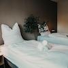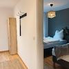 Gemütliche 2-Zimmer-Wohnung im 2. OG mit Balkon – der perfekte Ort, um nach einem langen Arbeitstag oder einer ausgiebigen Radtour durch die Natur aufzutanken. 4 flexible Einzelbetten bieten Komfort für Monteure, Geschäftsreisende, Familien oder Freundesgruppen. In der voll ausgestatteten Küche lassen sich gemeinsame Mahlzeiten zubereiten, während das Bad mit Wanne und das separate WC für extra Komfort sorgen. Abends lädt der Balkon dazu ein, den Tag entspannt ausklingen zu lassen.