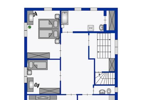 Vom Eingangsbereich aus gelangen Sie in die verschiedenen Wohnbereiche, die durch ihre durchdachte Raumaufteilung überzeugen.
