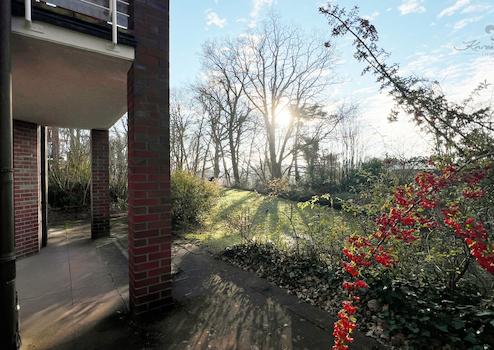 Mit knapp 95m² bietet die Wohnung viel Platz für die ganze Familie. Beim Betreten empfängt Sie ein geräumiger Flur mit einem hell gefliesten Gäste-WC. Die Einbauküche ist voll ausgestattet und bietet mit Echtholzfronten eine langlebige Qualität, des Weiteren bietet die Küche die Möglichkeit eine kleine Essecke einzurichten. Die nach Norden und Osten ausgerichteten Schlafzimmer lassen sich kreativ gestalten und auch für das Home-Office nutzen - ideal für die Tage zu Hause. Durch die bodentiefen Fensterfronten und großen Fenster sind alle Zimmer lichtdurchflutet und schaffen eine helle und angenehme Wohnatmosphäre. Im modern und hell gefliesten Vollbad befindet sich neben der Badewanne auch eine Dusche und ein praktischer Waschmaschinenanschluss. Das großzügige Wohnzimmer ist nach Süden ausgerichtet und bietet direkten Zugang auf den überdachten Terrassenbereich mit Blick in das grüne Göhlbachtal. Das Highlight der Wohnung ist der rundum verlaufende Gartenbereich, ein Ort, an dem Sie die Natur genießen und zur Ruhe kommen können. Durch die Südausrichtung genießen Sie angenehme Abende im Sonnenlicht. Hinzu kommt noch sehr praktischer Stauraum im Keller. Dieser hat eine Größe von knapp 31m². Des Weiteren verfügen über alle Fenster Außenrollläden.