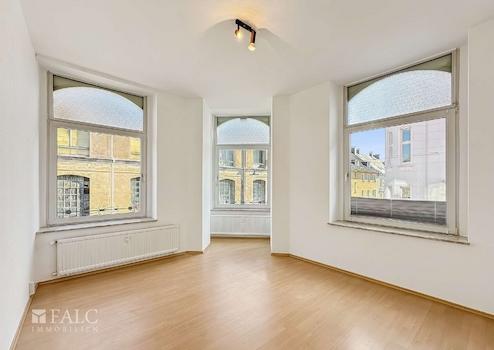 Direkt anschließend bietet das Schlafzimmer mit seinem stilvollen Erker einen ruhigen Rückzugsort. Der besondere Grundriss verleiht dem Raum eine wohnliche Wärme und macht ihn zu einem Ort, an dem man gerne zur Ruhe kommt.
