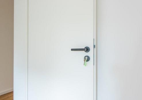 Türen, Zargen und Griffgarnituren wurden in der Farbe weiß "Seidenmatt" ebenfalls erneuert. Die Zimmer sind je mit einem Zylinderschlüssel ausgestattet worden, der nur für diese Tür schließt - gut bei WGs.