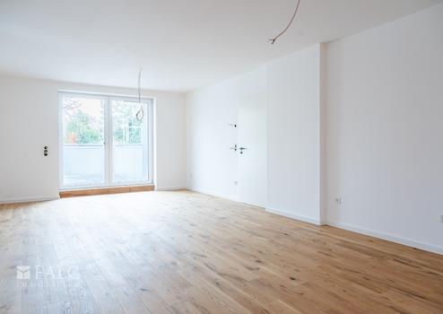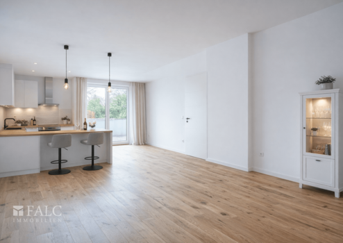 Die Wohnung verfügt über 3 Zimmer, darunter einen großzügigen offenen Wohn- und Essbereich, der ein luftiges, modernes Wohngefühl vermittelt und vielfältige Einrichtungsmöglichkeiten bietet. Durch die großen Fensterfronten entsteht eine natürliche Helligkeit, die den Wohnbereich optimal inszeniert.