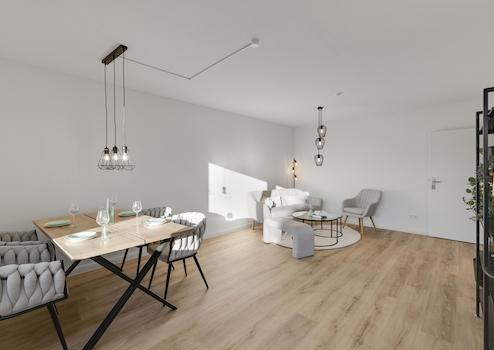 Hinweis: Die Wohnung wurde für die Vermarktung professionell gestaged. Die abgebildeten Möbel und Dekorationen sind nicht Bestandteil des Kaufangebots. Die Wohnung wird schlüsselfertig und leer übergeben.