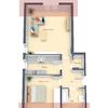 Aufteilung: Flur, Bad, Schlafzimmer, Küche, Abstellraum, Wohnzimmer