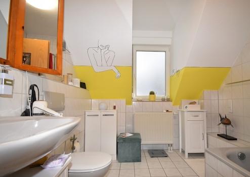 Bad mit Wanne, WC, Handwaschbecken, (Waschmaschinenanschluss separat im Keller)