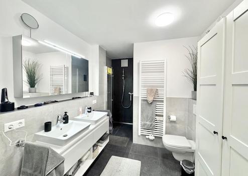 Das hochwertige Badezimmer mit Dusche, WC & Waschbecken
