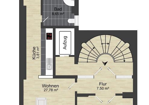 Die Wohneinheit im 2.Obergeschoss ist wie folgt aufgeteilt: