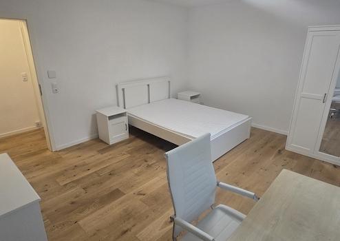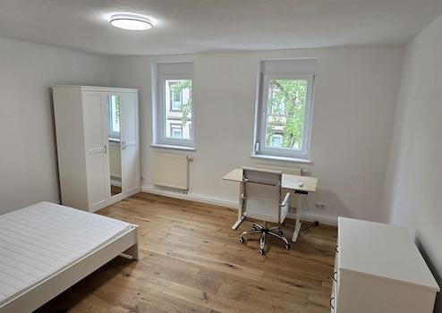 Dieses helle, modern eingerichtete Zimmer befindet sich in einer gepflegten Dreizimmer-WG in der Duisburgerstraße 26 in Stuttgart-Bad Cannstatt. Das Zimmer ist ca. 20 Quadratmeter groß und komplett möbliert mit 140cm x 200cm Bett, 2 Nachtschränken, 1 Nachttischlampe, höhenverstellbarer Schreibtisch, Stuhl, Kleiderschrank und Regal. Dank der großen Fenster ist es hell und freundlich. Die WG verfügt über eine voll ausgestattete Küche mit Kühlschrank, Gefrierschrank, Herd, Backofen, Geschirrspüler und allen notwendigen Küchenutensilien. Das Badezimmer ist modern gefliest und wird gemeinschaftlich genutzt. Eine Waschmaschine mit Waschtrockner steht ebenfalls zur Verfügung.