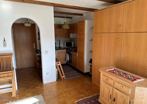 Vom Wohnraum und vom Balkon hat man einen herrlichen Blick über grüne Wiesen in die Kaiser-Bergwelt. Der Wohn- und Essbereich ist sehr großzügig mit Zugang zu einem großen Balkon mit Ausblick ins Grüne. Eine kleine Kochnische und ein Bad mit Wanne vervollständigen das Bild. Zur Wohnung gehört auch ein Tiefgaragenstellplatz, eine kleine Einbauküche sowie ein Kellerbereich.