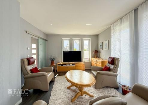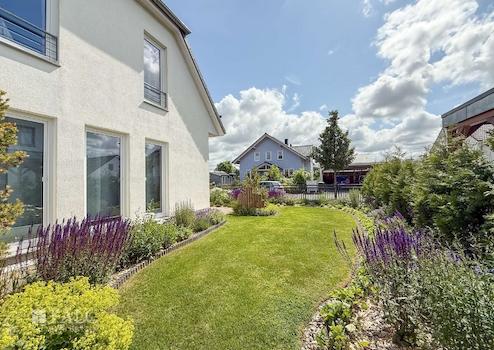 In ruhiger, familienfreundlicher Lage eröffnet sich auf einem großzügigen, liebevoll gepflegten Grundstück eine Wohnwelt voller Licht, Klarheit und Wärme. Weitläufige, lichtdurchflutete Räume und klare Strukturen formen ein Ambiente, das Rückzugsort und Repräsentation zugleich ist.