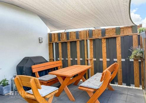 Neben dem Wintergarten steht eine seitliche Terrasse als Grillecke zur Verfügung.