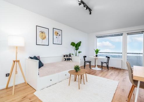Willkommen im DEBA-Hochhaus, einer Ikone der Münchner Nachkriegsmoderne des renommierten Architekten Ernst Maria Lang. Dieses Apartment im Stadtteil Solln wurde soeben aufwendig modernisiert und bietet urbanen Wohnkomfort auf höchstem Niveau.