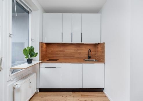 • Küche: Moderne Einbauküche inklusive Herd und Kühlschrank sind im Kaufpreis enthalten.
