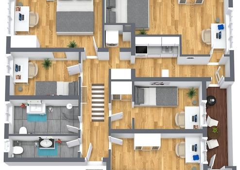 Jedes der fünf WG-Zimmer ist schlüsselfertig möbliert, sodass du nur noch deine persönlichen Sachen mitbringen musst:
