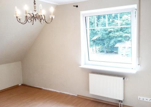 Ergänzt wird die Wohnfläche durch einen attraktiven, kostspielig ausgebauten Spitzboden im 2. OG mit 15,4m² (Grundfläche: 27,3m²), der mit Laminat, Flachheizkörper und zwei großen Dreiecksfenstern mit maßgeschneiderten Jalousien zur Westseite ausgestattet ist. Er ist mit einem Geländer aus Kiefer abgesichert und über eine Raumspartreppe zugänglich.