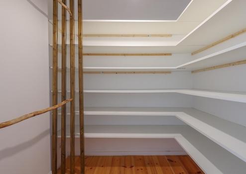 •Schlafzimmer mit begehbarem Kleiderschrank und neuen Regalen