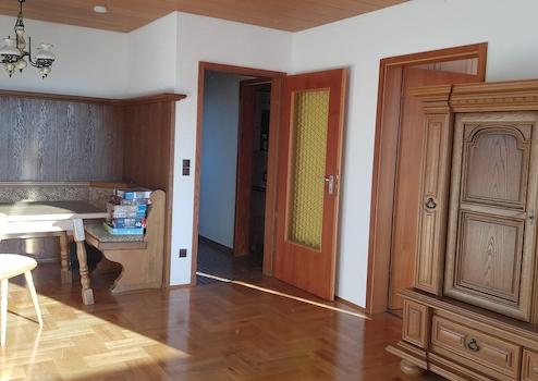 Die Wohnung ist sehr gepflegt und teilmöbeliert (Schlafzimmer mit Bett und Schrank), Eckbank sowie eine voll ausgestattete Küche. Die Möbel können auf Wunsch entfernt werden.
