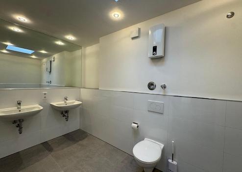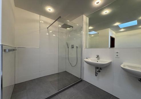 Die Küche befindet sich direkt neben dem Essbereich, sodass lange Wege beim gemeinsamen Essen vermieden werden. Die vorhandene Einbauküche kann für 500€ vom Vermieter abgekauft werden. Insgesamt stehen drei Schlafzimmer zur Verfügung, von denen eines mit Einbauschränken ausgestattet ist und somit ausreichend Stauraum bietet. Das moderne Badezimmer verfügt über eine große Dusche, ein WC sowie zwei Waschbecken. Ergänzend dazu ist ein Gäste-WC vorhanden, in dem sich ein Waschmaschinenanschluss sowie Platz für einen Trockner befinden, wodurch der Gang in den Keller entfällt. Ein separater Abstellraum rundet das Raumangebot innerhalb der Wohnung ab.