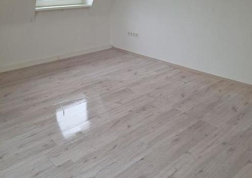 Die Böden sind bis auf das Bad mit Laminat ausgelegt.